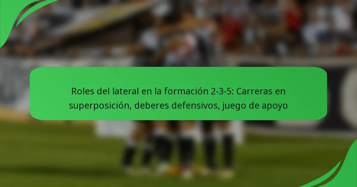 En la formación 2-3-5, los laterales son fundamentales para equilibrar las tareas defensivas con el apoyo ofensivo, lo que los convierte en piezas integrales del enfoque táctico del equipo. Su capacidad para ejecutar carreras en superposición no solo mejora las jugadas de ataque, sino que también asegura la estabilidad defensiva, permitiendo una progresión efectiva del balón y la explotación del espacio en el campo.