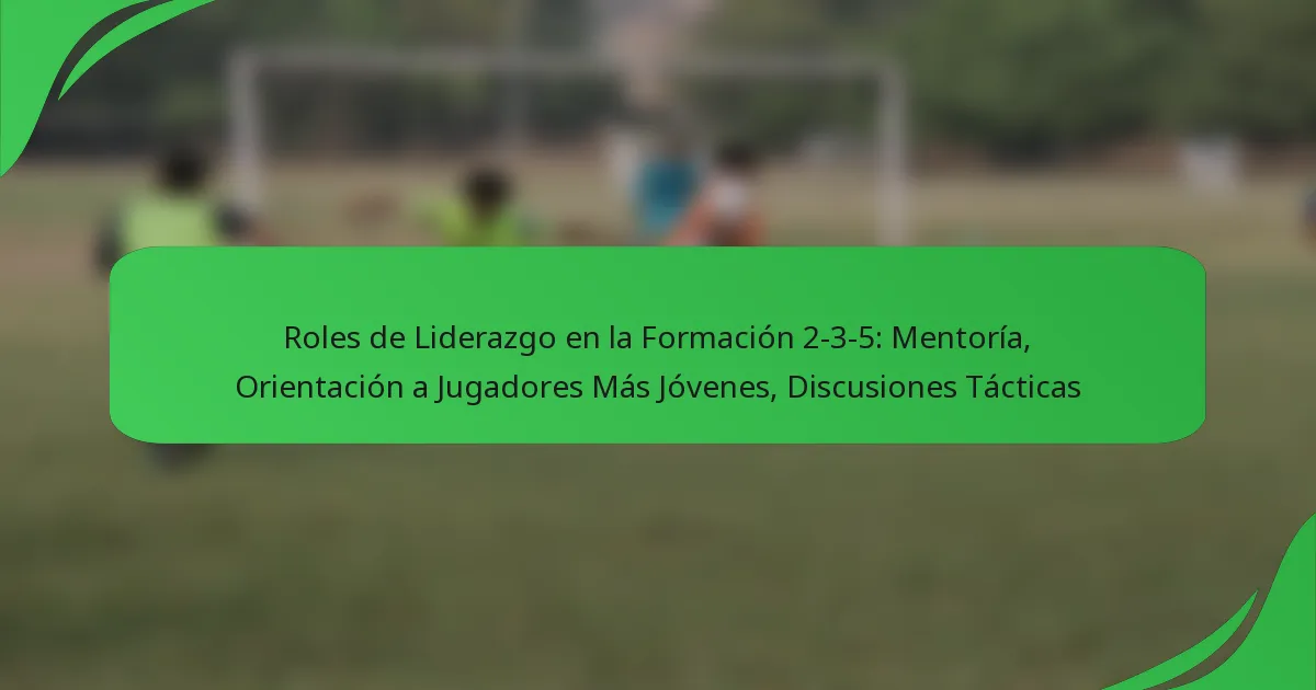 La formación 2-3-5 enfatiza la importancia de los roles de liderazgo que contribuyen significativamente a la cohesión y efectividad del equipo. Los jugadores experimentados asumen responsabilidades de mentoría, guiando a los compañeros más jóvenes a través de discusiones tácticas y fomentando un ambiente de apoyo que mejora el rendimiento general. ¿Cuáles son los roles de […]